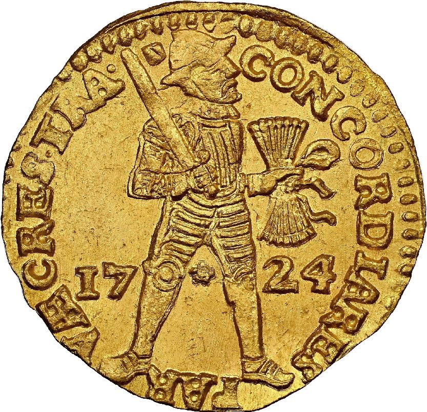 Utrecht, United Netherlands, gold ducat, 1724, NGC MS 64 / Akerendam (Shipwreck Blue Label).