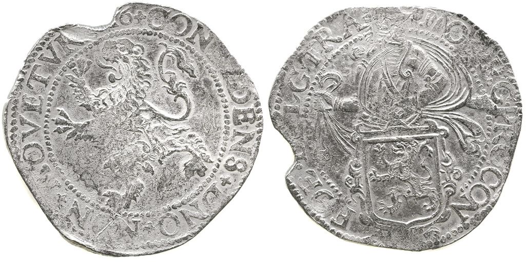 Utrecht, United Netherlands, "lion" daalder, 1616. KM-13. 26.8 grams. Broad flan with notch in edge at date, otherwise full legends, good inner details, very little corrosion. Recovered from: Campen, sunk in 1627 off the Isle of Wight, south of England