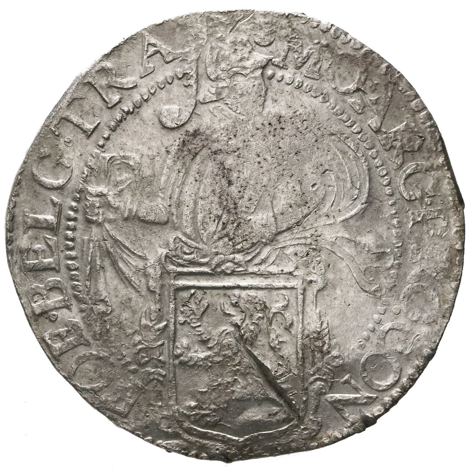Utrecht, United Netherlands, "lion" daalder, 1616. KM-13. 26.91 grams. Lustrous AU or so with almost no corrosion, center design a bit weak (as struck) yet legends rather strong, some scratches from salvage. With photo-certificate from the salvor. From: Campen, sunk in 1627 off Isle of Wight, south of England