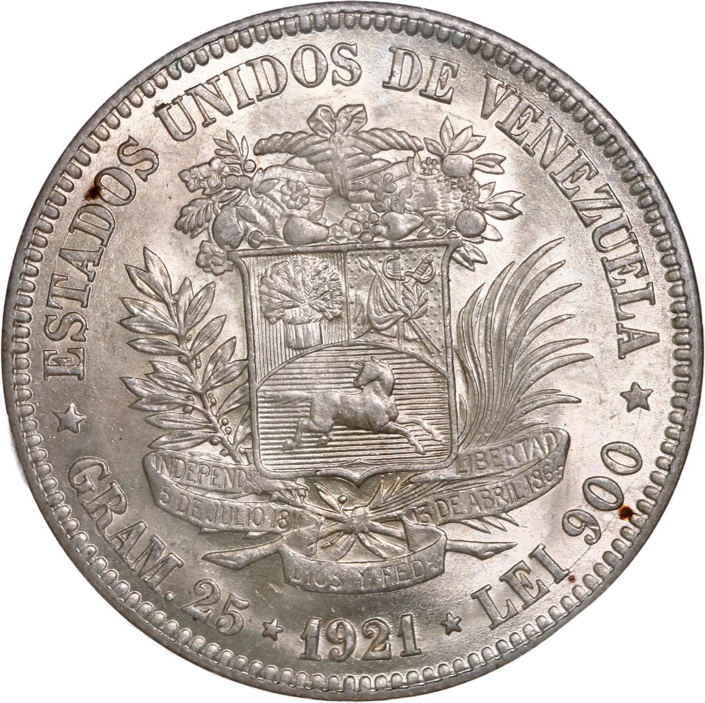 VENEZUELA, struck at the Philadelphia Mint, 5 bolívares, 1921, NGC MS 61.