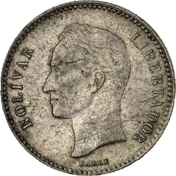 VENEZUELA, struck in Belgium, 1/5 bolívar, 1879, crude letters, NGC AU details / scratches. KM-Y19.1. One-year type struck in relatively low mintage and withdrawn as an odd denomination when the ¼ bolívar came along in 1894, now a key coin for collectors, this example with nice luster and faint gray toning but with several long, old scratches on both sides.