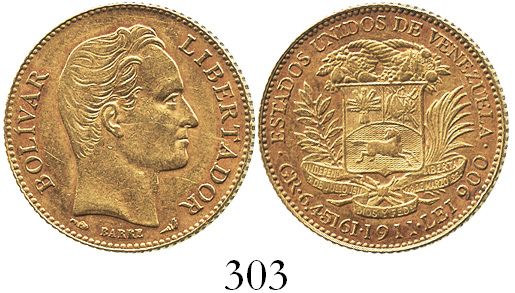 Venezuela, (20 bolivares), 1911. KM-Y32. 6.5 grams. Red-toned UNC, no problems.