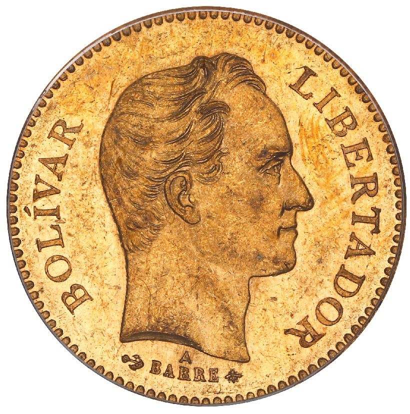 Venezuela (struck at the Paris mint), gold 5 venezolanos, 1875-A, PCGS MS62 (old green label).