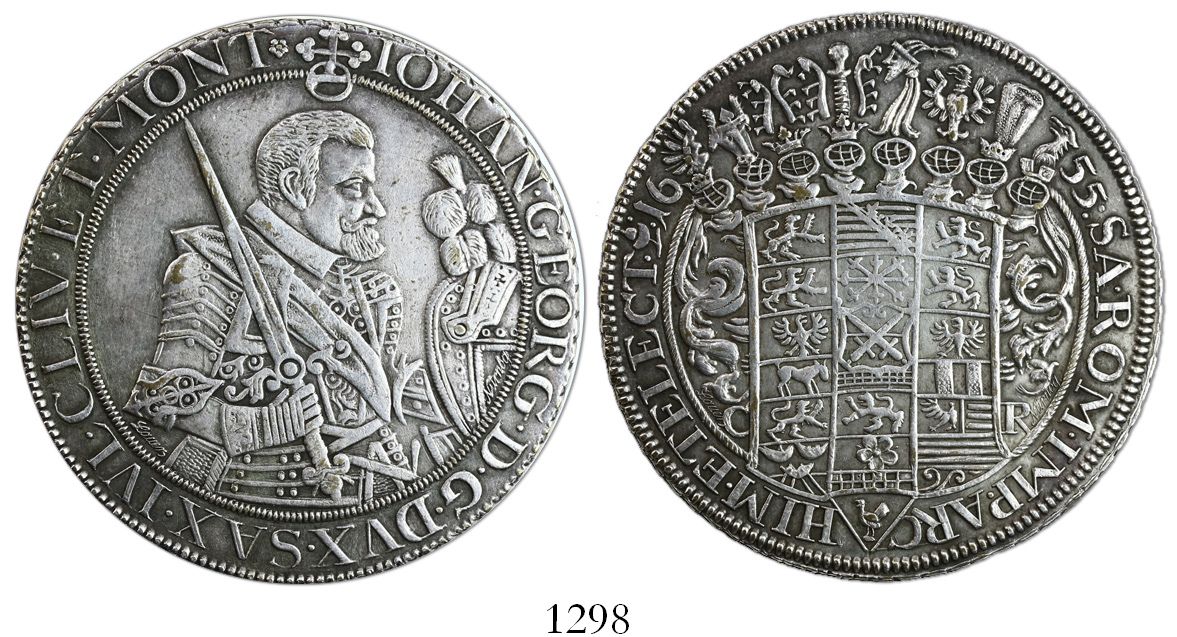 Saxony-Albertine (German States), thaler, Johann Georg I, 1655-CR. Dav-7612; KM-425. 26.84 grams. Well-detailed XF with toning on fields (nice contrast).