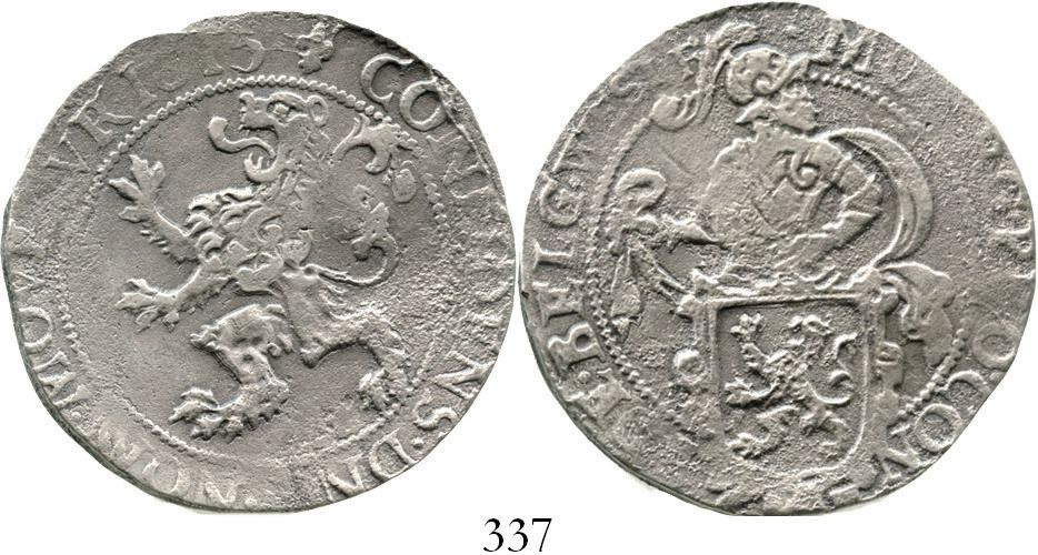 Westfriesland, United Netherlands, "lion" daalder, 1615. KM-14.1. 25.1 grams. Bold lions (on obverse and in shield on reverse), minimal corrosion, very lightly toned. Pedigreed to our Auction #4, with lot-tag #298, and with original certificate from the salvager. From the Campen, sunk in 1627 off the Isle of Wight, south of England