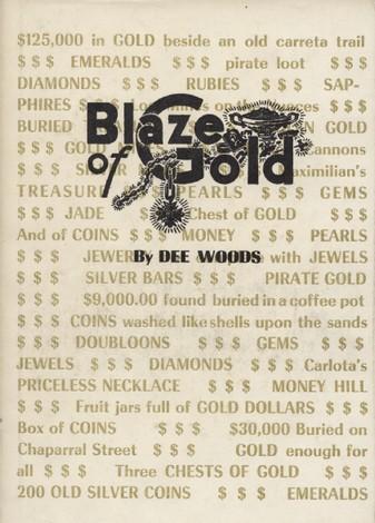 Woods, Dee. Blaze of Gold (1972, HB/DJ, mint). This book is a collection of tales about searching for hidden treasures on the Gulf Coast of Texas. Pedigreed to the Tom Sebring Treasure Library.