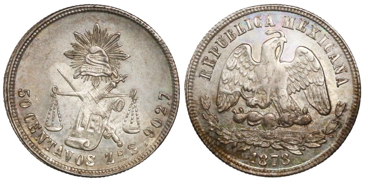 Zacatecas, Mexico, 50 centavos, 1878/7S.