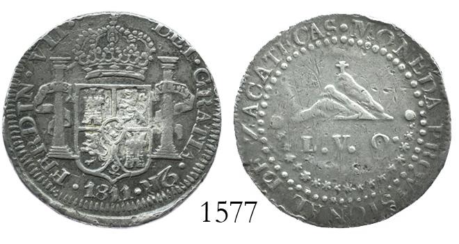 Zacatecas, Mexico (War of Independence), 2 reales, Ferdinand VII, 1811-LVO, provisional issue, date