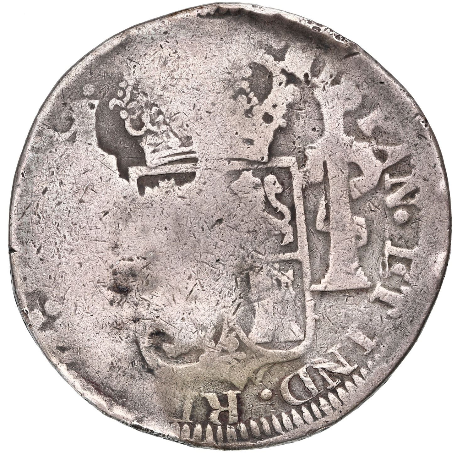 Zacatecas, Mexico, bust 8 reales, Ferdinand VII, 1814 AG, ex-Calbeto. KM-111.5; Cal-1454. 26.21 grams. Very crude Fine struck with partially broken dies, dark rose toning with gold hues, desirable pedigree. Pedigreed to the Gabriel Calbeto collection (duplicates), with his envelope.